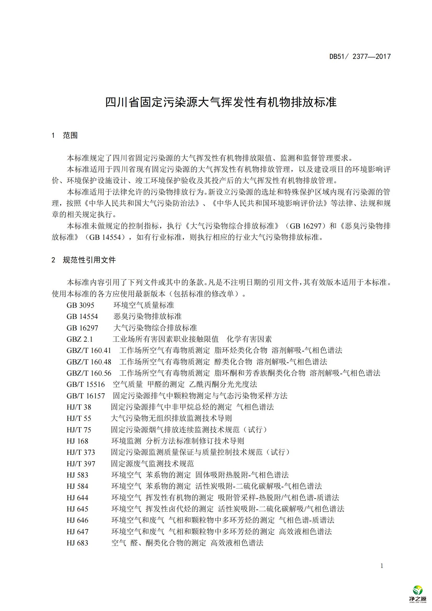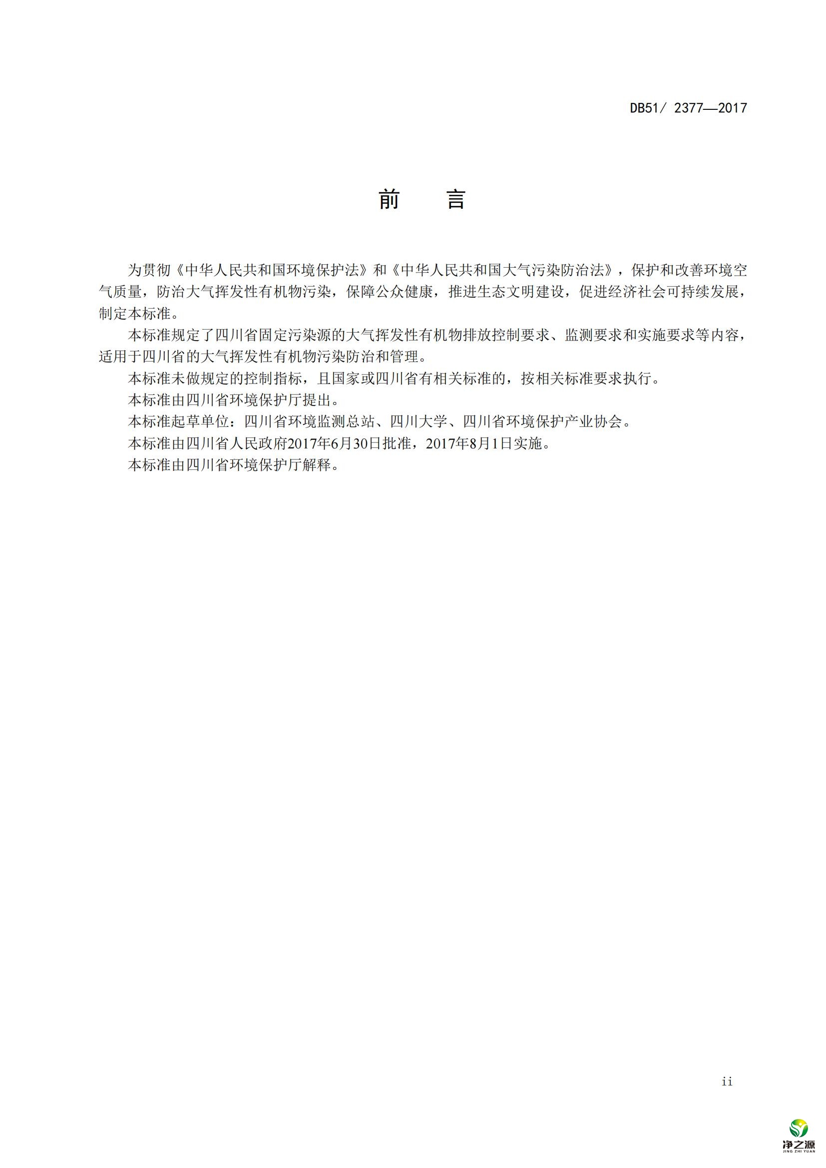 四川省固定污染源大氣揮發(fā)性有機(jī)物排放標(biāo)準(zhǔn)DB512377-2017